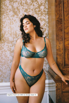 The bra is made entirely of soft elastic lace and is finished with gold colored stainless steel hardware. Pair the bra with the matching G-string or Thong for a complete set!