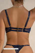 The bra is made entirely of soft elastic lace and is finished with gold colored stainless steel hardware. Pair the bra with the matching G-string or Thong for a complete set!