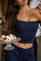 De Pointelle Camisole heeft een comfortabele, aansluitende pasvorm en voelt licht en zacht aan — perfect om in te ontspannen of om te dragen als stijlvolle basis onder je loungewear. Combineer het hempje met de bijpassende short, broek of wrap vest voor een complete pyjamaset.