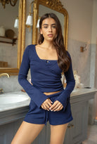 Combineer de short met de Pointelle Camisole en het wikkelvestje voor een complete, vrouwelijke loungewear-look.